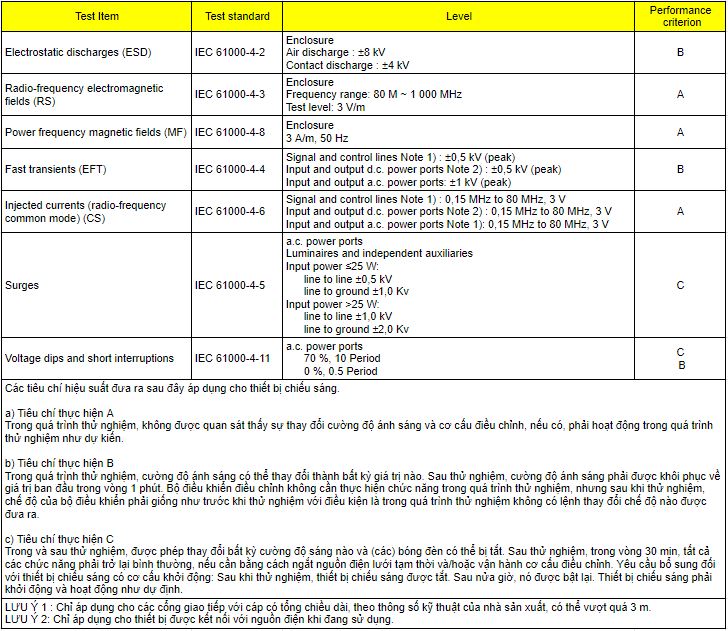 Các hạng mục test theo tiêu chuẩn IEC 61547: