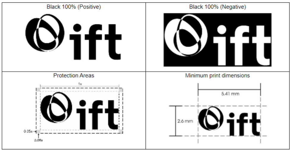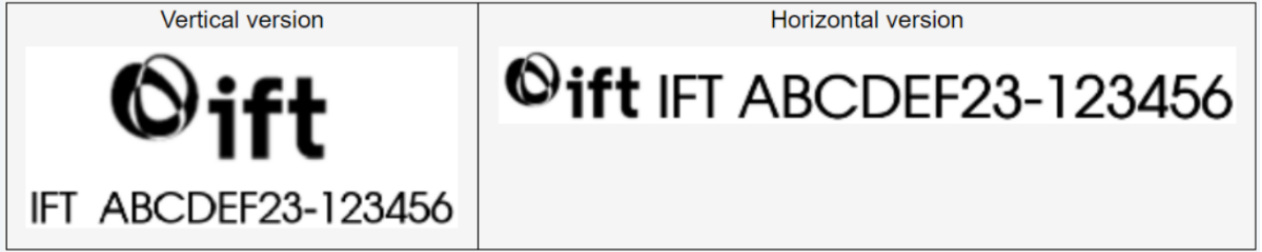 Nguyên tắc dành cho logo mới yêu cầu dấu IFT phải được đặt theo chiều dọc hoặc chiều ngang bên cạnh dấu "IFT: XXXXXXXXXXXXX" hiện có, như trong ảnh (ví dụ) bên dưới.