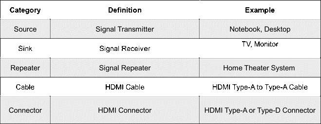 Các loại sản phẩm sau có thể được chứng nhận bằng HDMI: