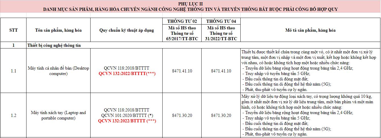 - Compulsory addition of QCVN 132:2022/BTTTT for target devices such as DECT devices (Subscriber type IP phones), PCs, Laptops, Tablets, IPTV Setup Box, TVs... Effective from July 15, 2023. Conditions apply from January 1, 2024, for testing before January 1, 2024, IEC 62368-1:2018