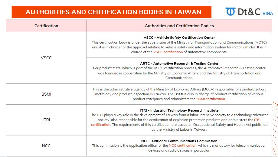Và dưới đây là cái nhìn tổng quát về các chứng nhận cần có khi đưa sản phẩm vào thị trường Đài Loan.