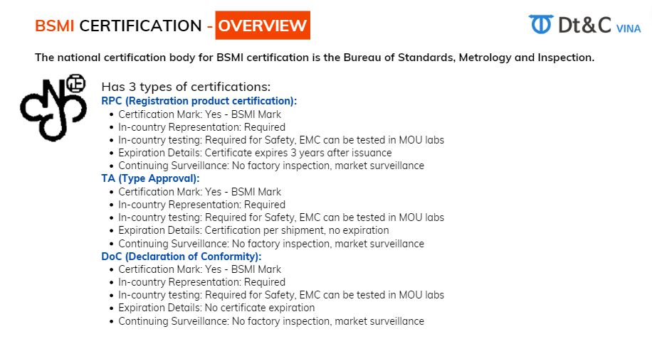 Quy trình cơ bản khi xin chứng nhận BSMI: