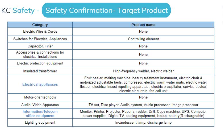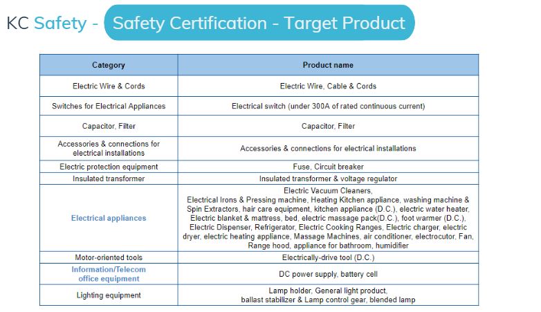 Phạm vi áp dụng đối với chứng nhận KC về an toàn điện