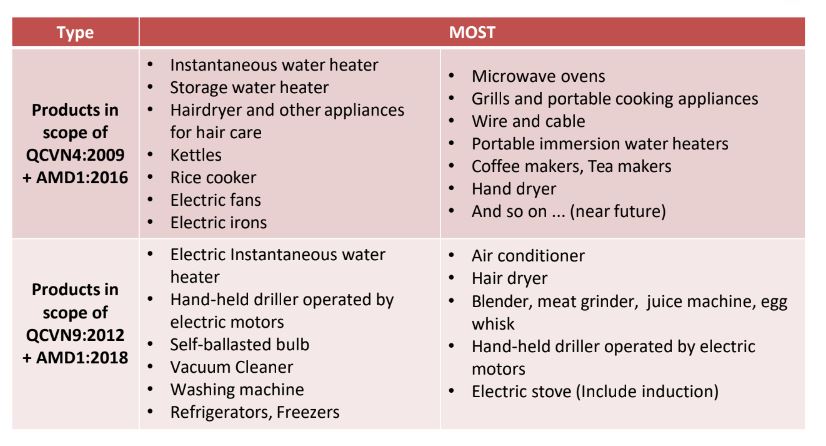 Phạm vi áp dụng đối với QCVN 4:2009 + AMD1:2016, QCVN 9:2012 + AMD1:2018, QCVN 19:2019/BKHCN