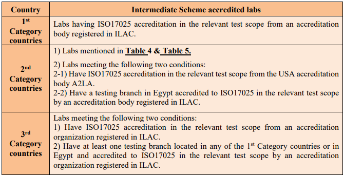 Egypt: Updated list of accredited laboratories and documents required for type approval procedure