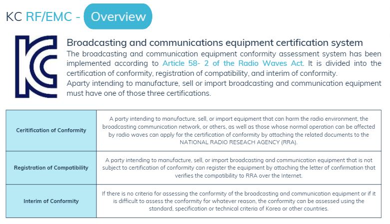 South Korea is one of the most important and innovative industrial nations in Asia. In order to enter this market many products are mandatory to be tested and certified. There are three main bodies that are accredited as certification bodies and permitted to conduct product tests, factory audits and issue certificates. These are the Korea Testing and Research Institute (KTR), the Korea Testing Laboratory (KTL) and Korea Testing Certification (KTC). Some main certifications in Korea: KC Certification, KS Certification, Korea Energy Efficiency Program,...