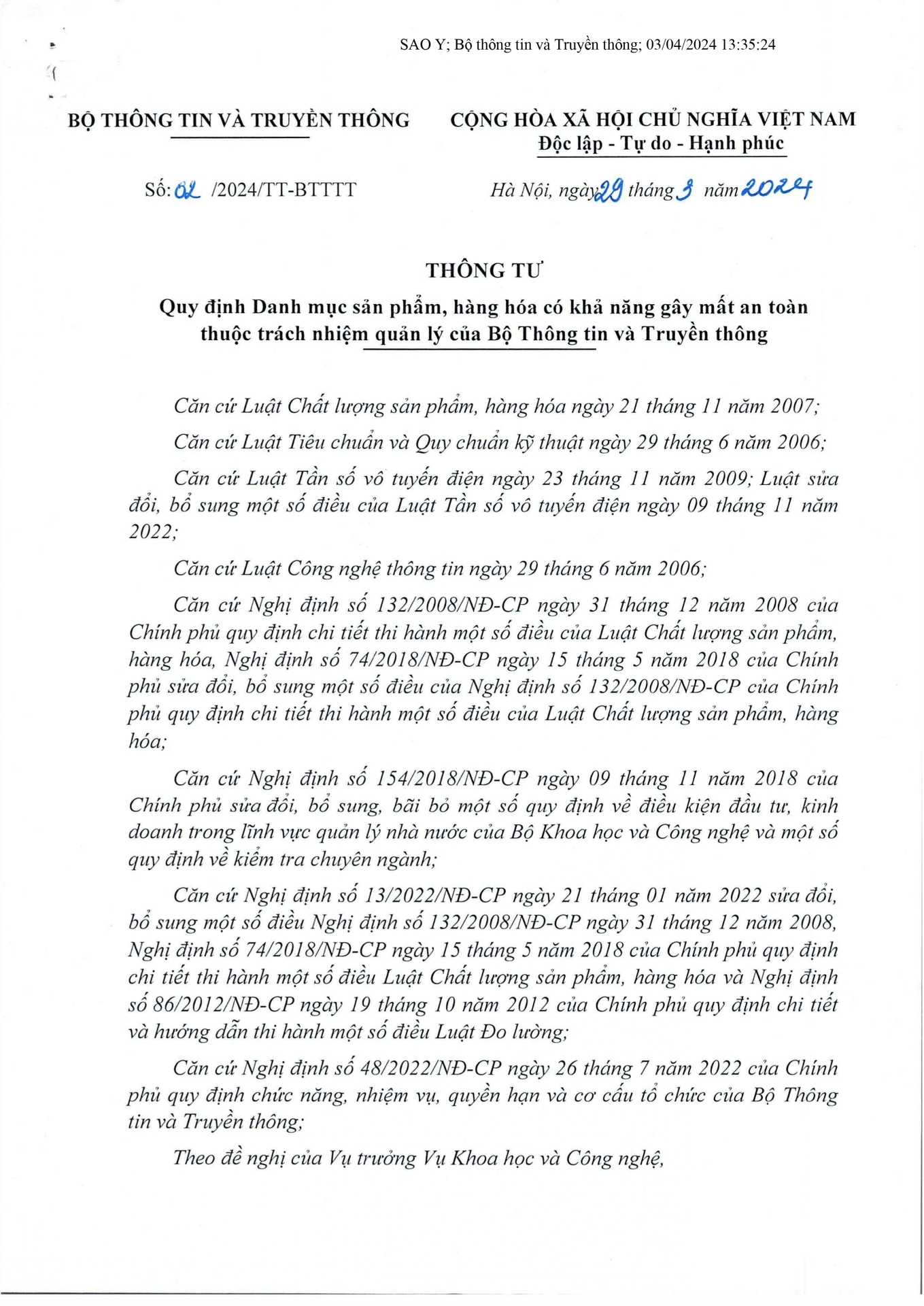 To understand the latest updated regulatory information for products, goods, telecommunications and information technology equipment, Dt&C VINA would like to inform customers and partners of the content of Circular 02/TT-BTTTT of Ministry of Information and Communications is as follows: