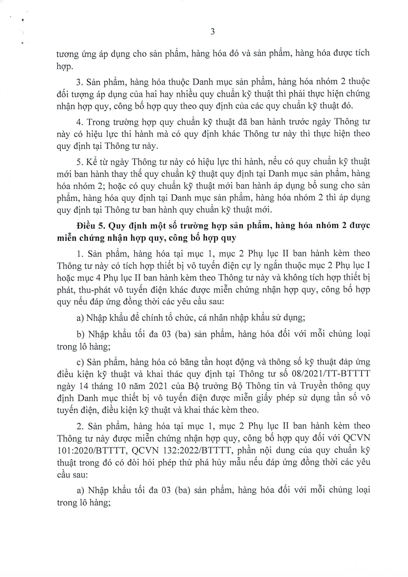 2) Exemption from certification of conformity and declaration of conformity to QCVN 101:2020/BTTTT, QCVN 132:2022/BTTTT, the content of the regulation requires destructive testing of samples for regulated products and goods specified in sections 1 and 2 of Appendix II if they meet the following requirements at the same time: