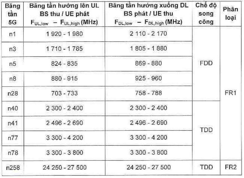 This regulation stipulates the technical requirements for radio access for stand-alone 5G mobile communication network terminal devices operating on all or one of the frequency bands specified in the Table below and complying with regulations on management and use of radio frequencies in Vietnam.