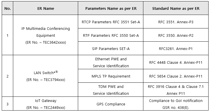 Đối với hai loại sản phẩm (Bộ định tuyến Wi-Fi CPE và IP), các ứng dụng chứng nhận TEC phải có từ ngày 1 tháng 7 năm nay Các thông số tuân thủ ITSAR.