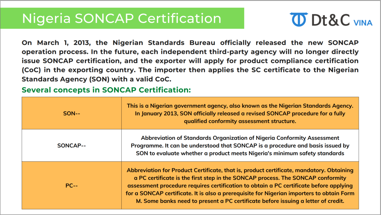 Chứng nhận SONCAP của Nigeria