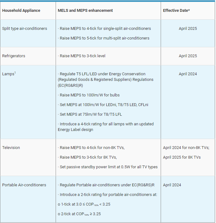 The energy efficiency of home air-conditioners, refrigerators, and televisions has improved over the years. To keep up with technology improvements, NEA will raise energy standards for regulated split-type air-conditioners and refrigerators and introduce standards for televisions.